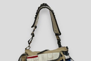 Vintage Prada c. 2001 Cargo parachute bag, Vintage S/S 1999 Roberto Cavalli Runway Sheer White & Zebra Maxi Dress, ALEXANDER McQUEEN F/W 2003 “Scanners…